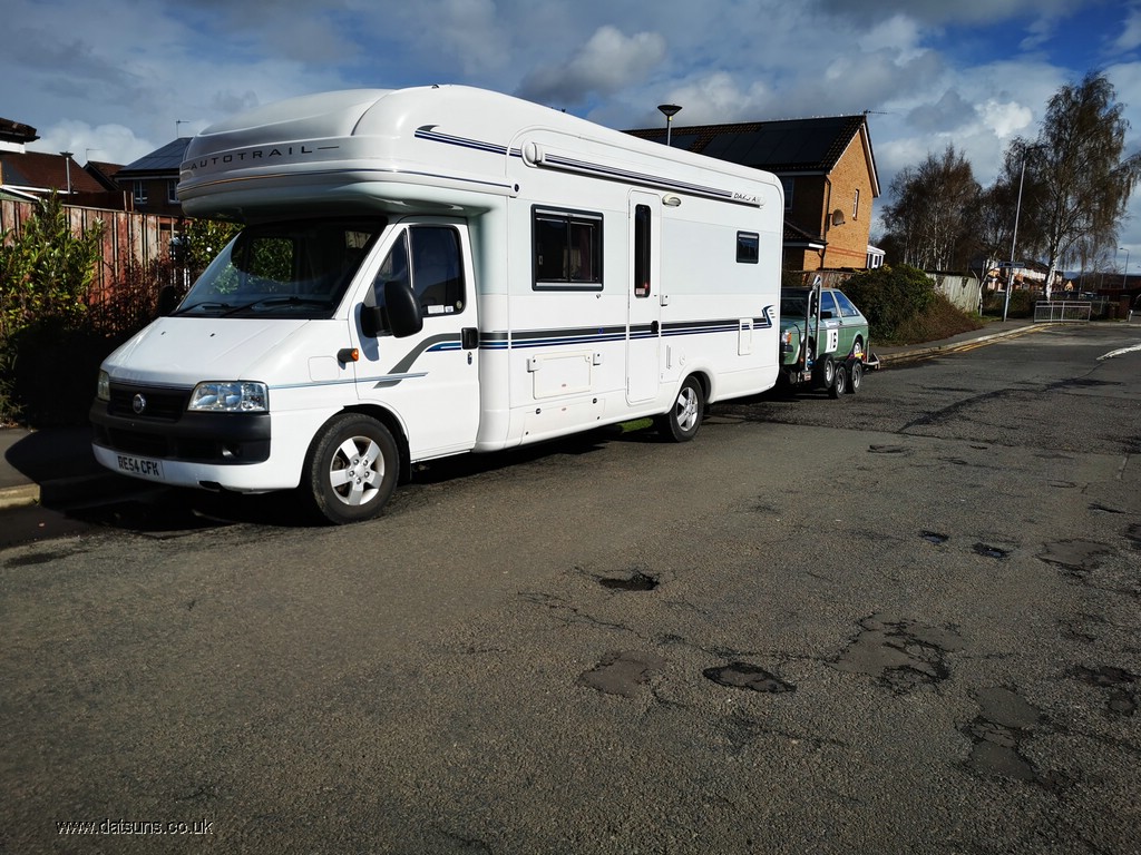 The Time had come 14th April 2023 it was a friday morning we packed up motorhome ready and loaded up the car with some tools, fuel, coolant, oil and loaded it on to the trailer.